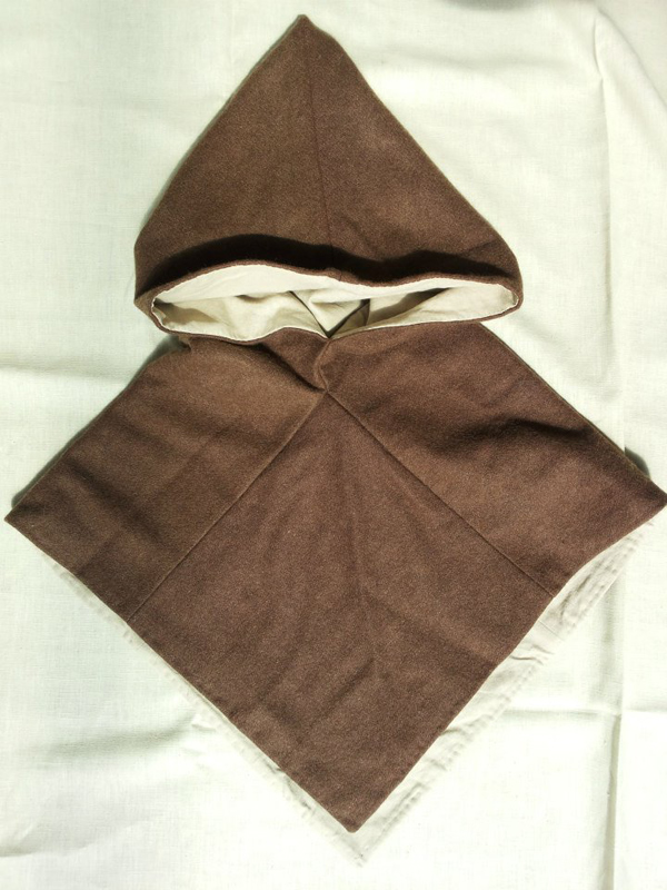Intrepretation der Skjoldehamn Gugel. Braune Mantelwolle, mit naturfarbenen Leinenfutter.